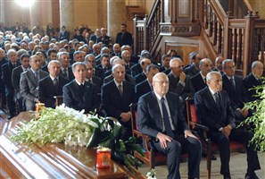ترأس الصلاة الجنائزية لراحة نفسه البطريرك الماروني مار بشارة بطرس الراعي، وعاونه الكاردينال مار نصر الله بطرس صفير، والمطارنة بولس مطر، طانيوس الخوري ورولان أبو جودة، السفير البابوي غابريال كاتشيا، رؤساء الطوائف وممثلو الكنائس في لبنان ولفيف من الكهنة. وحضر الجنازة رئيس مجلس الوزراء نجيب ميقاتي ممثلاً رئيس الجمهورية العماد ميشال سليمان، النائب عبد اللطيف الزين ممثلاً رئيس مجلس النواب نبيه بري، الرئيس أمين الجميل، الرئيس حسين الحسيني، الرئيس فؤاد السنيورة، نادر الحريري ممثلاً الرئيس سعد الحريري، نائب رئيس مجلس النواب النائب فريد مكاري.