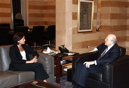 وكان الرئيس ميقاتي إستقبل سفيرة الإتحاد الأوروبي لدى لبنان أنجيلينا إيخهورست التي قالت بعد اللقاء : بحثنا مع دولة الرئيس الوضع الأمني في لبنان والمنطقة. إن الإتحاد الأوروبي قلق جداً جراء التطورات الأخيرة، وقد دعونا جميع الأطراف واللاعبين إلى إحترام سيادة لبنان والإمتناع عن أي عمل من شأنه أن يزيد من حدة الوضع الحساس بالأساس في المنطقة. بحثنا هذه المسألة مع الرئيس ميقاتي، كما بحثنا في أهمية أن تتشكل حكومة الآن في لبنان يمكنها إتخاذ القرارات في المسائل الراهنة.