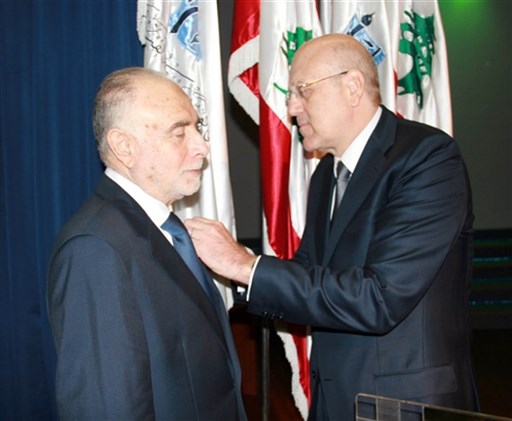 وفي ختام الحفل قلّد الرئيس ميقاتي المحتفى به وسام المعارف المذّهب باسم رئيس الجمهورية العماد ميشال سليمان.