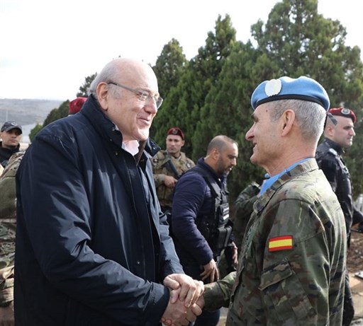 ANI - Le Premier ministre sortant, Najib Mikati, s'est rendu lundi au sud du Liban, où il s'est entretenu avec le chef de mission et commandant de la FINUL, le général Aroldo Lázaro, au quartier général du secteur Est de la FINUL à Ibl es-Saqi. Mikati était accompagné du commandant des Forces armées libanaises (FAL), le général Joseph Aoun, et d'autres responsables.