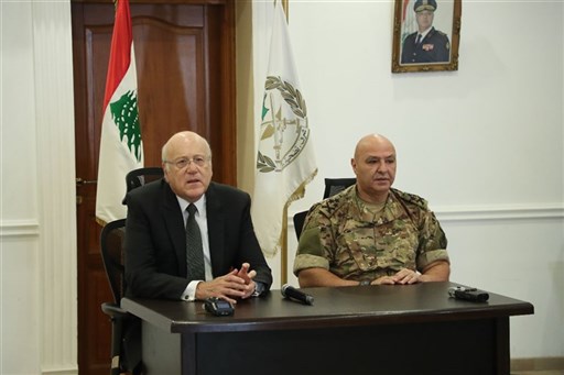 من جهته، شكر العماد عون رئيس الحكومة على تقديمه العزاء ووقوفه الدائم إلى جانب المؤسسة العسكرية.