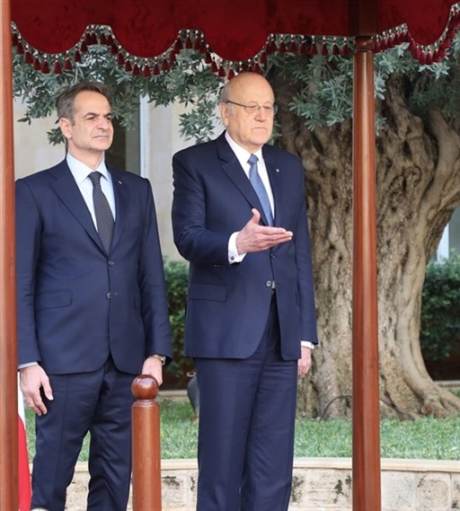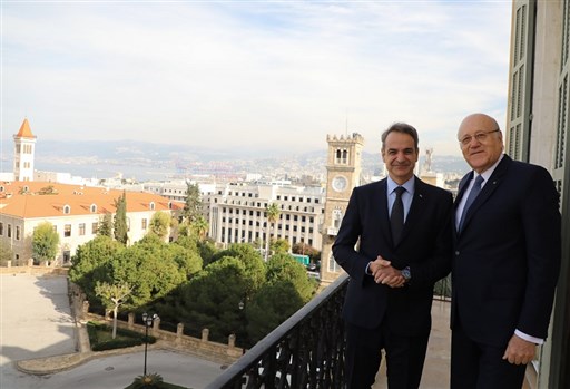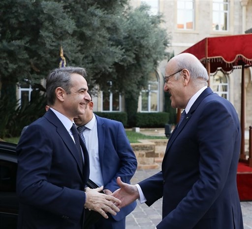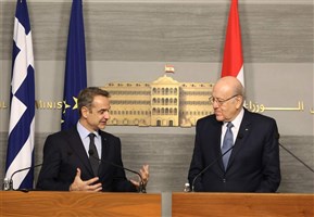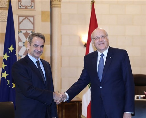 At the conclusion of the talks, Premiers Mikati and Mitsotakis held a joint press conference, during which Mikati said: “We were pleased today to receive the Greek Prime Minister, Mr. Kyriakos Mitsotakis, and the accompanying delegation. During the talks, we discussed various bilateral cooperation files, and the distinguished relations that bind our two countries.“